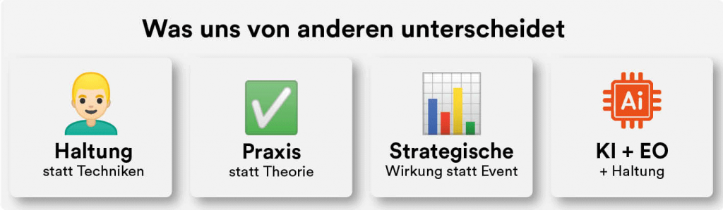 Doch je mehr automatisiert wird, desto entscheidender wird der Mensch: mit Klarheit, Haltung und der Fähigkeit, echten Mehrwert zu schaffen. Sie beantwortet auch nicht die entscheidende Frage: Wofür steht dein Unternehmen eigentlich?